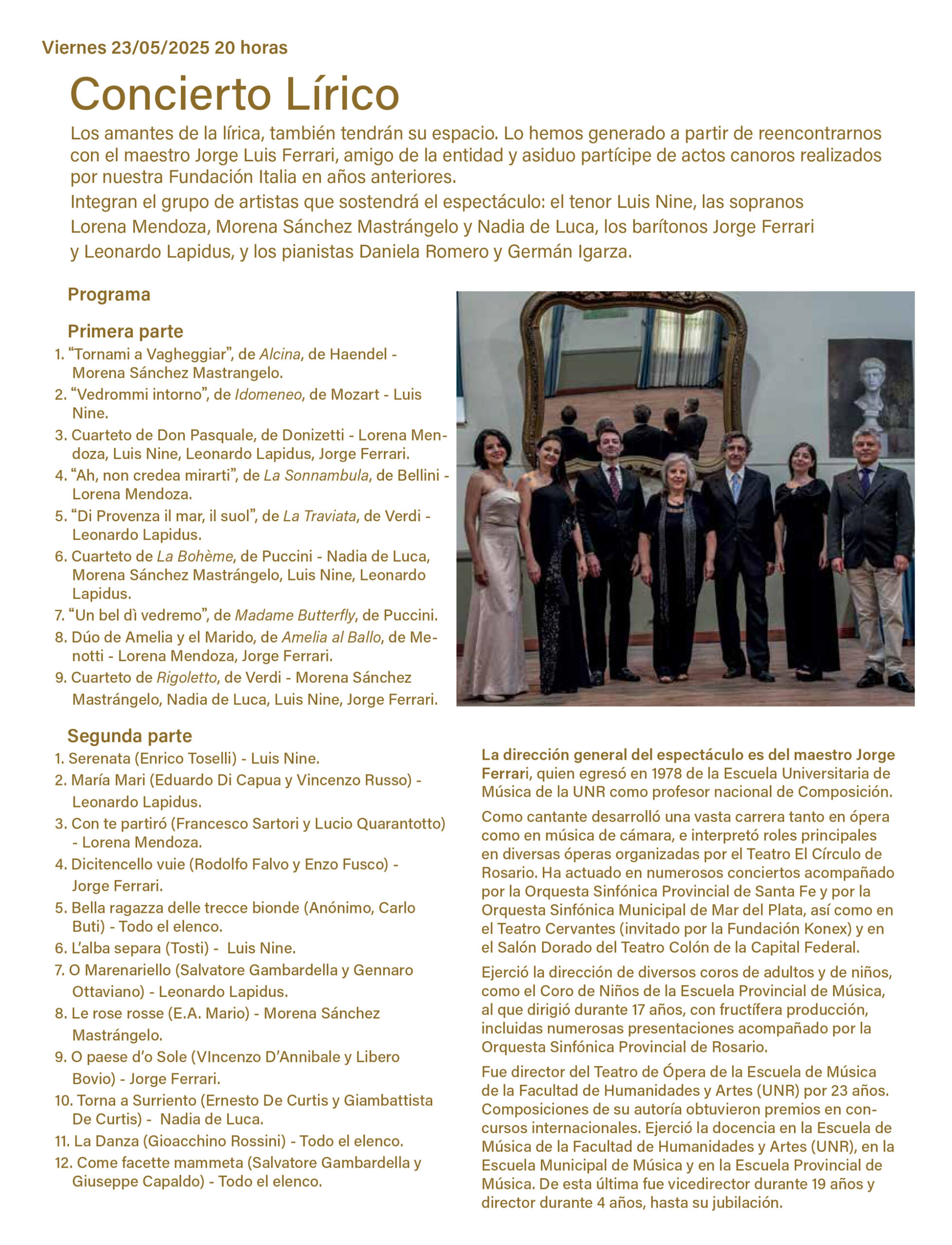 Música Concierto Lírico Formulario de inscripción: Evento elegido (obligatorio)—Por favor, elige una opción—Concierto Ensamble FulminiCholo Montironi en conciertoConcierto Lírico Nombre completo (obligatorio) Profesión Domicilio Localidad (obligatorio) Empresa Teléfono (obligatorio) Email (obligatorio) También te puede interesar... Los Grandes Libros: Las Mil y Una Noches Economía y Política: Damián Di Pace Concierto Cholo Montironi