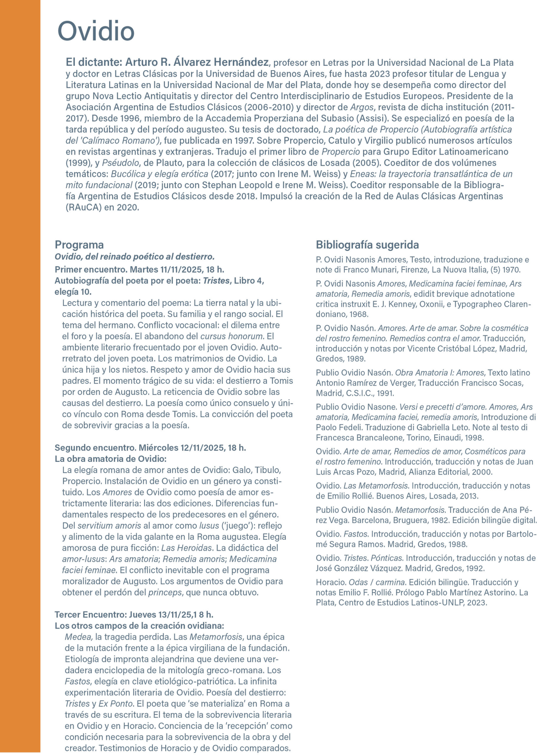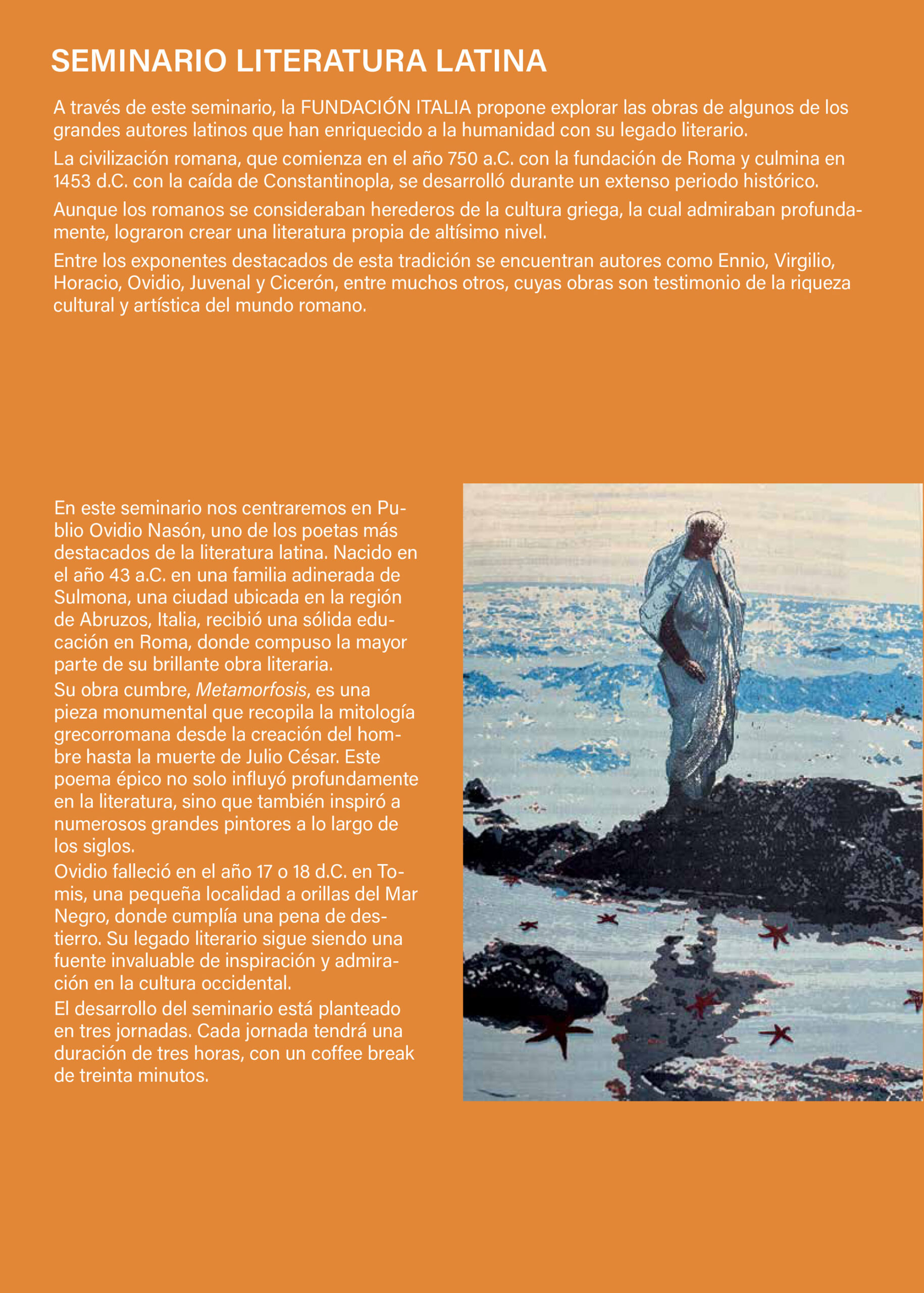 Seminarios Literatura Latina: Ovidio Costo: $.- Formulario de inscripción: Seminario elegido (obligatorio)—Por favor, elige una opción—Economía y Política: Damián Di PaceEconomía y Política: Salvador Di StefanoEconomía y Política: Jorge GiaccobeLos Grandes LibrosLiteratura LatinaSemana Lingua Italiana Nombre completo (obligatorio) Profesión Domicilio Localidad (obligatorio) Empresa Teléfono (obligatorio) Email (obligatorio) Por favor especificar cuando podemos enviarle su suscripción: Fecha: Hora: Etiquetas: Seminario "Literatura Latina"