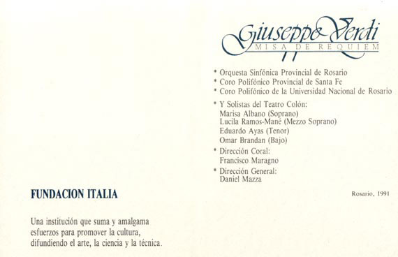 - Con la dirección coral del Maestro Francisco Maragno, la regie de Ana María Belgel y la dirección general del Maestro Daniel Mazza.