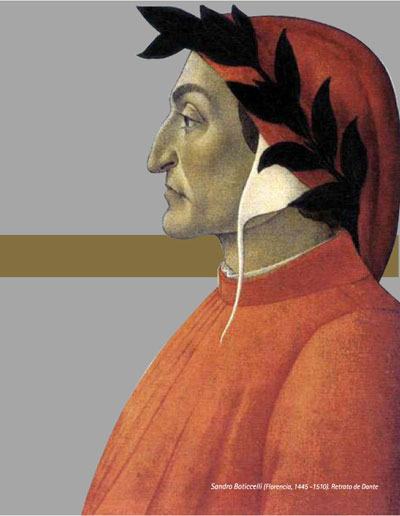 Dante Alighieri nace en Florencia en 1265, y durante su juventud participa activamente de la vida política de su ciudad. En 1301 es desterrado, y no volverá nunca más a Florencia. Son sus obras principales: Vita Nuova, Convivio, De Vulgari Eloquentia, De Monarquia y el mayor poema de la literatura italiana, la Divina Commedia. Muere en Ravenna en 1321, poco tiempo después de haber terminado la composición del Paradiso.